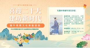 6月2日上午10:00,beats365亚洲版官网工会在电气馆二楼职工之家开展“礼敬中华端午诗文沙龙”。在沙龙活动中,教职工们一同学习了《离骚》经典段落,在诵读中体会屈原为国为民的爱国精神,品读了有关端午节的诗词古词,就古诗词中的端午起源、端午习俗、屈原的爱国精神、端午文化等方面展开交流和分享,大家积极发言,各抒己见,吟诗唱和,追忆先贤,品评经典,气氛热烈。一句句精美的诗句和其中蕴含的深刻含义,让人深刻感受到祖国传统文化的博大内涵。通过诵读,大家受益匪浅,增强了历史自觉,坚定了文化自信,弘扬了家国情怀。