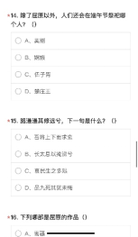 5月31日-6月2日,端午传统节日知识有奖问答活动在线上持续开展,活动以端午节相关传统文化常识作为题目,参与活动的教职工在线上扫码进行答题,在答题中学习端午节的相关知识,感受传统习俗的魅力,最后,以得分高低发放奖品。通过答题,老师们了解到端午节有五月节、菖蒲节、沐兰节等多种叫法,重温了“路漫漫其修远兮,吾将上下而求索”等诗人屈原的作品名句,学习了包粽子、赛龙舟、佩香囊等传统习俗的由来和意义。公司广大教职工踊跃参与,最后评选出一等奖7人,二等奖15人,三等奖45人。
