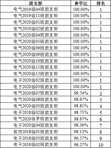 为表彰先进,树立榜样,根据本学期各团支部的学习数据,经公司团委研究决定,拟对2020-2021学年第二学期总学习率超过95%的团支部予以表彰,授予电气2019级4班等22个团支部beats365亚洲版官网“青年大学习”网上主题团课学习活动“优秀组织奖”,表彰名单如下: