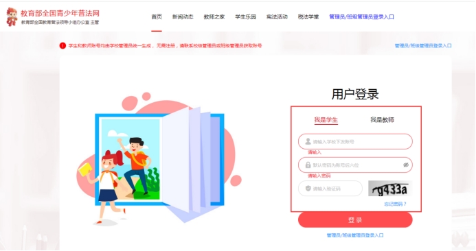 搜索教育部全国⻘少年普法⽹-点击 “宪法活动”-点击右上⻆“登录”; 或直接点击以下链接登录https://qspfw.moe.gov.cn/index.html(用户名:手机号,初始密码:手机号后六位),开始学习和测验。