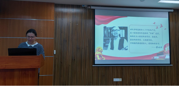 叶存昕同志分享了拜访贺威俊教授和连级三教授的感受,贺教授和连教授都曾奋战在建设祖国一线,他们都身怀电气人的奋斗精神和科研报国的理想,严于律己、迎难而上、辛勤耕耘,为我国铁道电气化与自动化以及我国磁浮铁路的发展都做出了不可磨灭的贡献。我们需要传承和发扬老教授们不畏困难、敢为人先、大胆创新、注重实践、无私奉献的精神。借用连级三教授夫人钮小明教授的话:我们首先要抓好自己的学习,做好分内的事,打牢坚实基础。其次在工作岗位上要不忘初心,统筹协调处理好人际关系。最后,要心系社会,关心人民,为人民发声,为社会出力。叶存昕同志又分享了“七一”勋章获得者周永开的故事,他带领当地的老百姓,通过种树护林,将曾经荒凉落后的花萼山变成国家级自然保护区,同时在这期间,他走遍花萼山乡镇村庄,鼓励百姓发展中药材种植,为山区农民找到了一条生态致富的途径。如今周永开在花萼山上种下的树,已经长成了一片森林。他在花萼山上留下的初心,也已化成一座精神丰碑。
