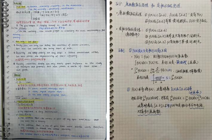 分享会的开始,各位同学逐一向大家分享自己在备战考研的过程中的笔记,包括数学、英语、政治和各专业课。养成记笔记的好习惯能帮助自己紧跟老师思路、抓住课程重点、便于及时复习。