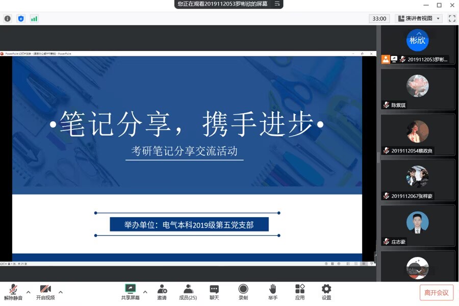 电气本科2019级第五党支部开展“考研笔记分享”主题交流会