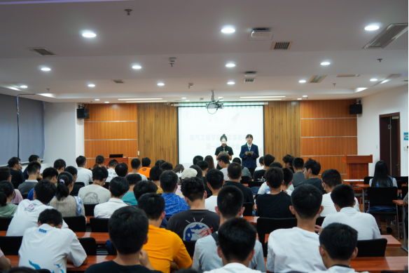 在大会宣布开始之后,EMC15届副主任吴雨吉上台发言。吴雨吉首先向新加入的2021级记者们表示了热烈的欢迎。接着,他回顾了EMC长期坚持的工作模式以及秉持的宗旨,向同学们介绍了EMC曾获得的众多荣誉。最后,吴雨吉代表第15届主任团向新EMCer们发出诚挚的祝福,“希望EMC陪伴你们度过美好的大学时光,也希望EMC在你们的努力下越来越好”。