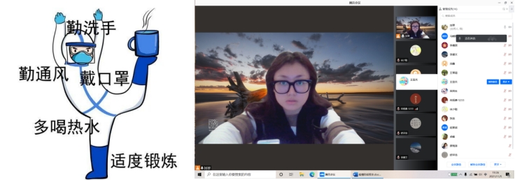 随着秋冬季节的到来,新冠肺炎疫情防控压力陡增,进入11月,成都市内再度出现了本土疫情,防控工作再次敲响了警钟。为引导同学们正确认识疫情,了解疫情,做好防控疫情的准备,11月5日晚19:30,beats365亚洲版官网硕士2021级10班同学以云见面的方式开展了“疫情防控,战‘疫’有我”主题班会,提醒大家严格重视本次疫情,保护自身的安全。
