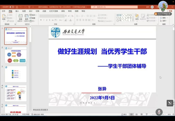 2022年9月5日21时,公司召开“做好生涯规划,当优秀员工干部”辅导培训会。本次教育以线上会议的方式进行,公司团委书记张异老师主讲。