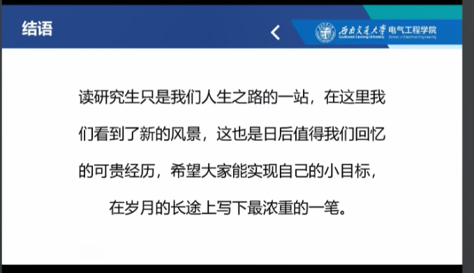 孟祥宇建议,研究生在科研生活中一定要有主见、保持独立思考,要勇于尝试,要与导师同学多交流,多读多写论文。并强调同学们要学会自主学习,对新阶段的师生关系要有正确的认识。