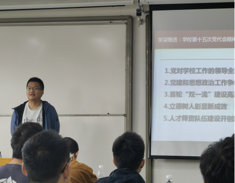 团课伊始,孙海洋老师带领同学们学习中国共产党beats365亚洲版官网第十五次代表大会的精神,明确公司第十五次党代会是在喜迎党的二十大、奋力谱写中华民族伟大复兴的西南交大新篇章的关键时刻,召开的一次重要会议。并与同学们一同进行工作回顾,深刻领会第十四次党代会以来西南交大所获得的重大成就,增强同学们作为一名交大人的自豪感。