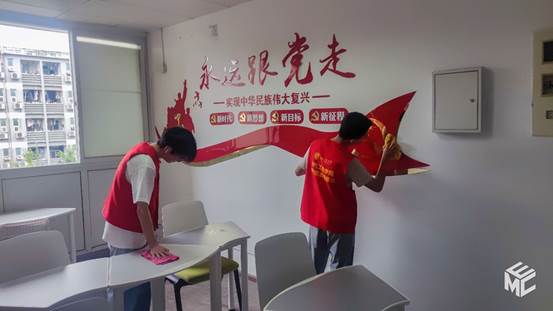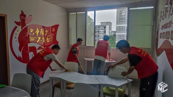为迎接新生到来,营造一个干净整洁的寝室文化环境,829日下午1430分,公司各社团成员组成的志愿者团队在员工宿舍自习室打扫卫生,重在清扫各处积灰、整理桌椅等,保证园区自习室的干净整洁。
