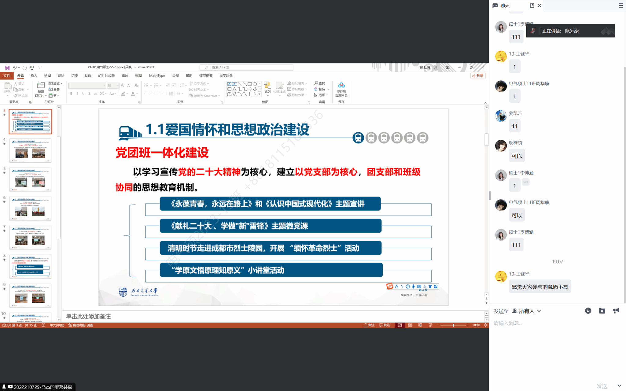为打造“砥砺研途”,进一步加强新生班级员工干部队伍建设,加强班级建设,beats365亚洲版官网硕士2023级于9月14日晚开展研究生班级建设交流会。本次交流邀请到电气硕士22级7班的班长马杰同学,他所在的班级曾在上一年度成功立项PADP项目,并获优秀结题。