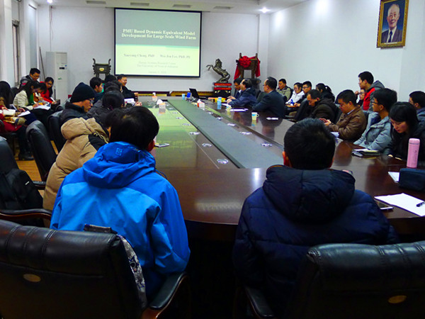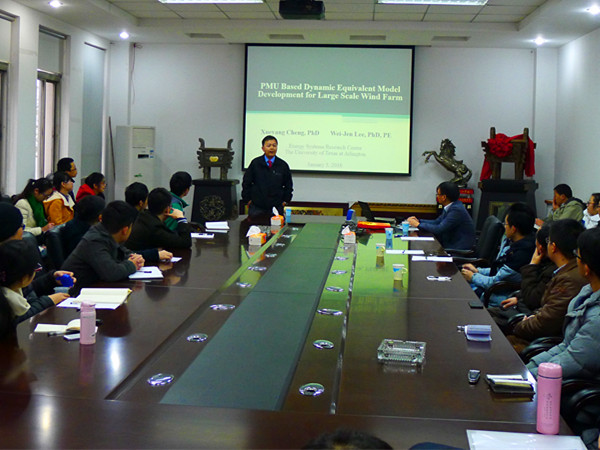 2015年1月5日上午,在beats365亚洲版官网电气馆3211会议室,美国德州大学阿灵顿分校李伟仁教授应邀为公司师生们带来本期“创源”大讲堂研究生学术讲座——《基于PMU的大型风电场动态等效模型研究》,此次讲座由何正友教授主持。