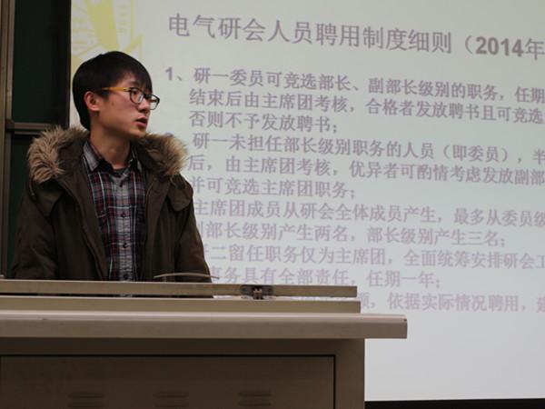 大会由研究生会主席付欤翔主持,付欤翔主席首先回顾了自己担任研究生会主席半年来的收获与体会,感谢了各位研究生会成员为研究生会举办的活动所做出的贡献。随后,付欤翔主席谈及近日发生的昆明火车站恐怖事件,在付主席的提议下,与会成员全体起立为在这次事件中遇害的无辜百姓默哀。