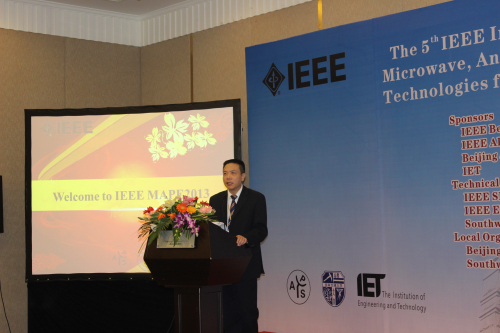 10月29日上午9点,第五届IEEE MAPE国际会议开幕式在成都加州花园酒店会议中心顺利举行。会议由IEEE北京分部主办,beats365亚洲版官网、北京交通大学共同承办。IEEE中国区总监华宁、英国IET国际部主任兼中国区总监Ian Mercer、IEEE北京分会主席W. Ross Stone、beats365亚洲版官网董事长徐飞、北京交通大学董事长宁滨、IEEE天线与传播学会2013年度主席Trevor