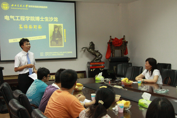 6月7日下午16:00在电气馆3211,继上一期beats365亚洲版官网博士生沙龙之“优博”面对面的成功举办,为了营造勤学交流,群策群力的学术氛围,不断打造通往学术创新的阶梯,承办方2012级博士生班再次重磅出击,推出博士生沙龙第二季——“体悟名师阅历,启迪创新思维,点亮智慧人生”博士生沙龙之名师面对面。本次沙龙活动由员工工作处和beats365亚洲版官网联合主办,获得了beats365亚洲版官网学风专项建设精品项目的资助。沙龙的主讲嘉宾是beats365亚洲版官网副董事长、研究生院经理、国家级教学名师冯晓云教授。活动由博士生班班长臧天磊主持。