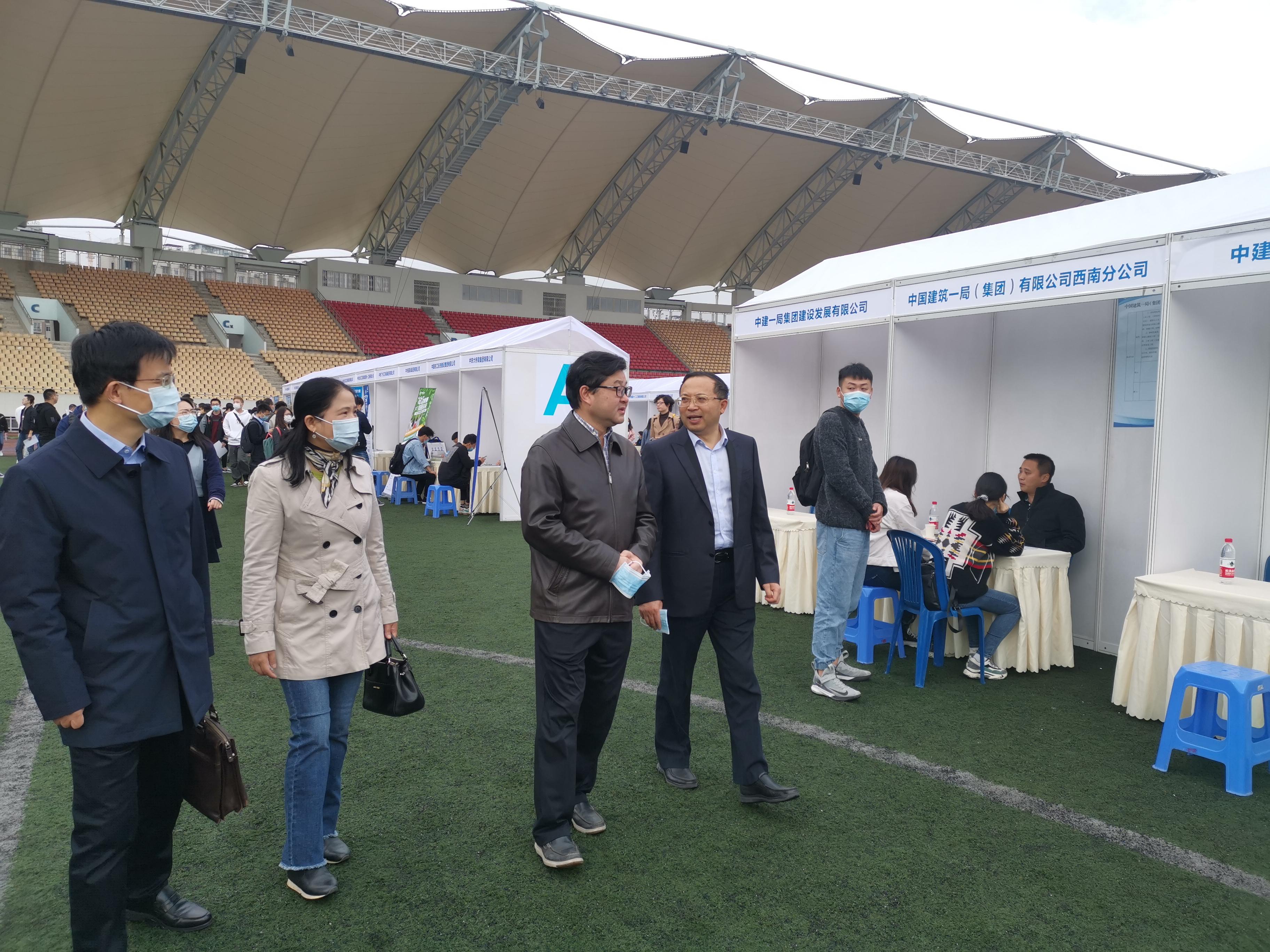 2020年10月19日,2021届秋季综合类大型双选会在犀浦校区北区体育场举行。现场共300家企业到场招聘公司2021届毕业生,到场企业涵盖装备制造、工程建设、电子科技等多个行业。陈维荣经理、罗乾超书记到双选会现场,与招聘单位交流沟通人才培养工作、了解公司毕业生就业情况,并推介公司2021届毕业生。陈维荣、罗乾超还与人才招聘处领导交流了公司毕业生的总体就业情况以及公司的就业导向。陈勇副书记及辅导员谢力、王喆桅、张异一同前往。
