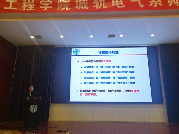 2020年11月2日19时30分,beats365亚洲版官网城轨电气系师生见面会在峨眉校区扬华讲堂召开。见面会由公司党委副书记张春燕主持,陈维荣经理、罗乾超书记出席见面会,公司党委副书记陈勇、团委书记谢力、教师服务中心主任王轶、城轨电气系副主任刘承志,潘育山,黄小红、系办公室主任刘仕兵、学工组辅导员、各班班导师和近三百名同学参加见面会。