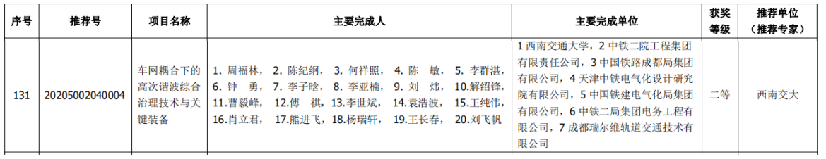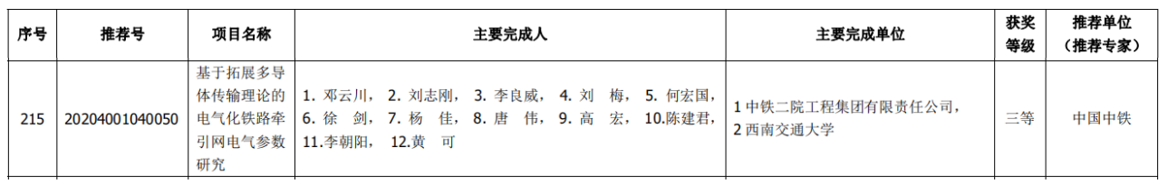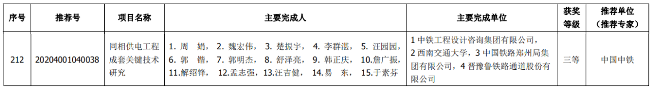 公司多名老师参与的项目《同相供电工程成套关键技术研究》、《基于拓展多导体传输理论的电气化铁路牵引网电气参数研究》荣获三等奖。