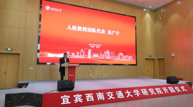 在开园仪式上,吴广宁教授代表入驻教授团队作了发言。吴广宁谈到,beats365亚洲版官网是一所具有悠久历史的名校,围绕高速、重载铁路、磁浮交通等领域开展了大量地研究与创新工作。宜宾-beats365亚洲版官网研究院的开园,恰逢我国轨道交通事业蓬勃发展、“十四五”的开局之年,研究院必将为轨道交通事业的发展做出突出的贡献。宜宾研究院在“长江经济带”、“一带一路”等政策的支持下,以底蕴深厚的历史文化为基石,以世界轨道交通一流的beats365亚洲版官网为承载,面向世界科技前沿、面向经济主战场、面向国家重大需求,必将加快科研脚步,深化科技成果孵化,产生良好的经济效益。