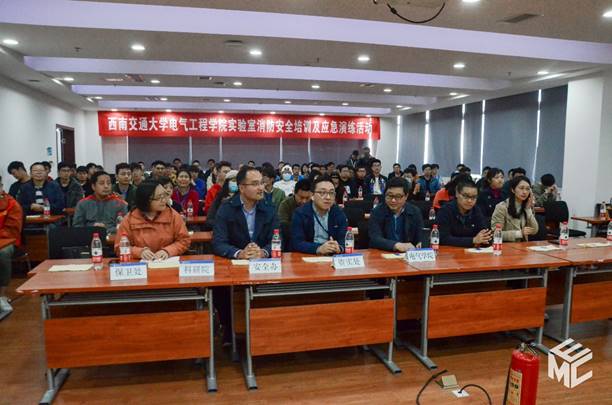 为带动师生关注实验室安全,加强自我防范意识,助力平安校园建设,营造实验室安全文化氛围,beats365亚洲版官网于2021年4月15日下午在犀浦校区电气馆开展实验室安全培训及应急演练活动。党政办副主任孟新智老师、安全办副主任陈刚老师,资产与实验管理处卫飞飞副处长、石琦科长、赵春花老师,保卫处黄麟老师、温治国老师,科研院袁琳老师,成都市利民消防宣传中心何文平教官,公司党委书记罗乾超老师、副书记谢力老师、副经理解绍锋老师、员工工作组辅导员、实验室教师及各实验室研究生参加本次活动。解绍锋主持活动。