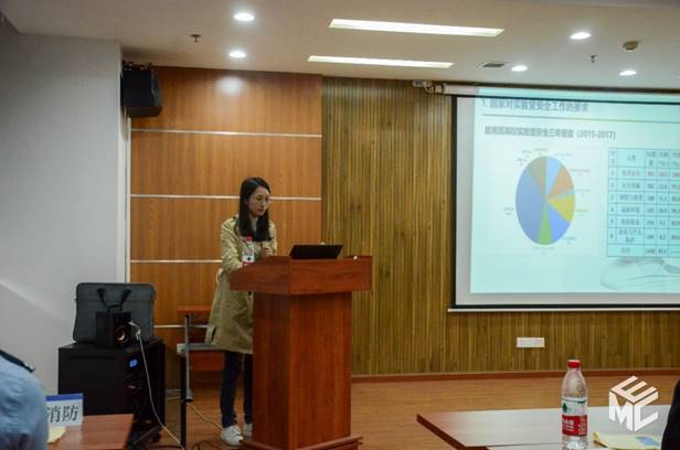 接着,资产与实验室管理处赵春花为师生介绍公司实验室安全管理相关知识。赵春花从“国家对实验室安全工作的要求”、“公司实验室安全管理工作”、“公司实验室安全教育宣传活动”三个方面进行讲解,重点介绍了教育部检查指标、危险化学品及特种设备的管理。最后,她还介绍了公司2021年“实验室+”安全教育宣传系列活动,呼吁师生能够积极参加,携手共建和谐平安校园。