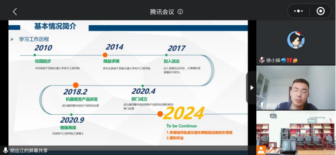 最后,优秀毕业生/在校生代表胡远江学长分享了学习和工作经验。胡学长在成都运达科技有限股份公司任职,本硕均毕业于beats365亚洲版官网,目前工程博士在读。胡学长从自己的切实感受出发,讲述自己当年面临选择继续深造还是工作的经历,鼓励同学们“一口气把书读到底”,这对于未来的工作也大有裨益。