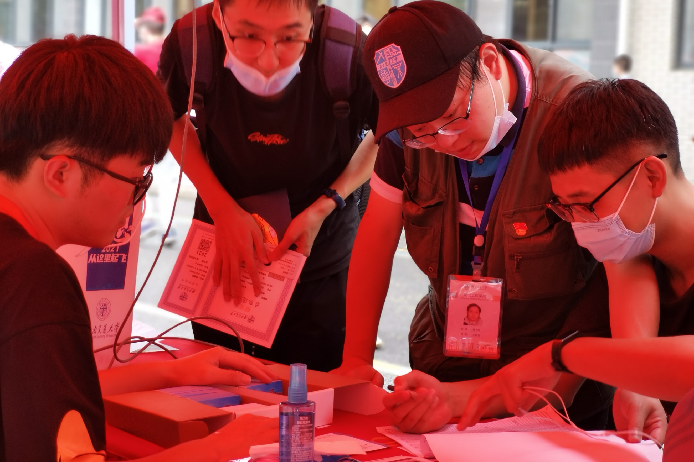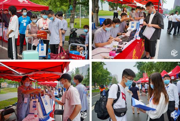 6时整,公司的迎新志愿者们已经来到迎新点和电气馆,有条不紊地进行着布置场地和物资运输工作。今年的迎新校园与往年相比稍显安静,在疫情防控要求下,非新生年级员工还未集中返校。但这并没有阻挡学长学姐们的迎新热情,志愿者中有暑期留校的,也有提前返校参加竞赛的,每一位志愿者都各司其职,公司领导和老师也在现场安排工作,力求让每一位新生都感受到公司的温暖热情,也让每一位家长都能放心安心。
