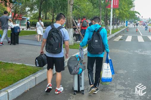 因疫情防控要求,家长不能进入校园,参加迎新工作的学长学姐们便主动帮忙搬运行李并提供行李暂存,将新生送至宿舍或摆渡车站点。