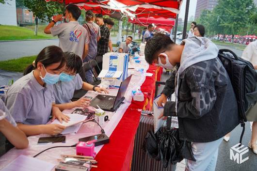 随着时间的推移,前来报到的新生逐渐增多,校门外排起了长队,所有新生都有序出示自己的健康码、核酸检测阴性证明、录取通知书等相关证件。进入校园后第一时间在集中检测点进行核酸检测。从身份确认、领取资料到核查信息,新生辅导员和迎新志愿者们都耐心细致地为新同学答疑解惑,辅导员助理也细心亲切地叮嘱着新同学开学后学习生活上的各种注意事项。