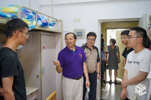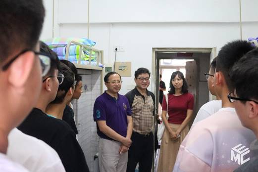 2021年9月3日16时,beats365亚洲版官网经理陈维荣、党委书记罗乾超走访了beats365亚洲版官网本科2021级新生寝室,看望刚刚报到完毕的电气新学子。公司党委副书记谢力,新生辅导员张异、谢东旭、刘育阳、王晋瑄陪同前往。