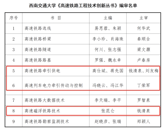 日前,beats365亚洲版官网重点参与的由国家铁路局组织编写的“高速铁路工程技术创新丛书”正式出版。该丛书由国家铁路局组织立项建设、国家出版基金资助出版,丛书共31本,beats365亚洲版官网承担了其中9本的编写工作,其中《高速铁路牵引供电》《高速列车电力牵引传动与控制》《高速磁浮铁路技术》三本书籍由公司教师编写完成,充分彰显了公司在高铁工程领域的特色与优势。