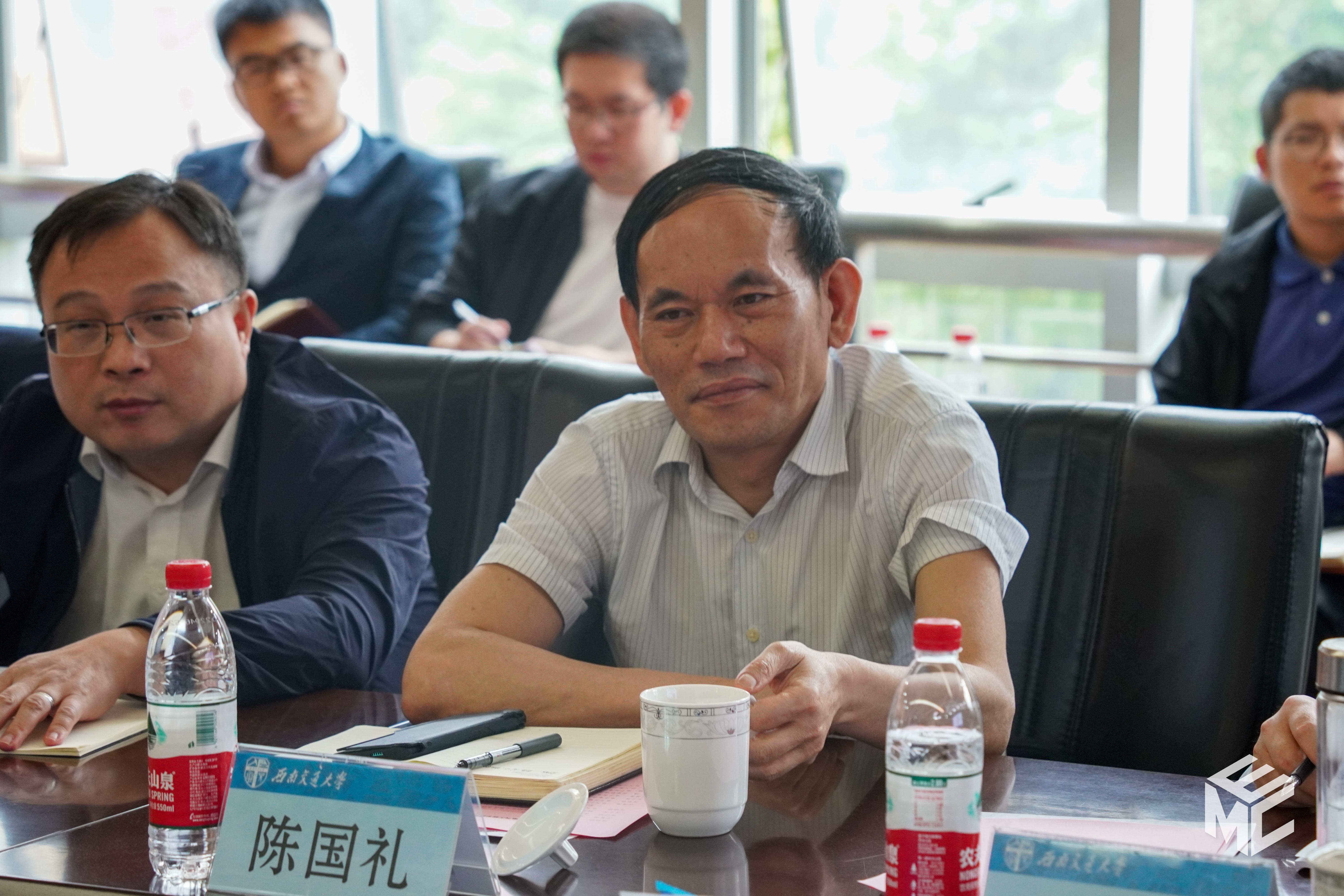 2022年5月14日15时,中铁武汉电气化局领导莅临beats365亚洲版官网进行交流研讨。中铁武汉电气化局集团公司总工程师冯小鹏,副总工沈曼盛,物质设备部部长陈国礼,科信部部长祝晓红,上海电气公司总经理徐平,运管分公司总经理高剑,设计研究院总经理李顺成,科工装备总经理卢永彬,机械设备中心总经理黄敏等相关部门领导;beats365亚洲版官网经理陈维荣,党委书记罗乾超,智慧城市与交通公司经理何正友,beats365亚洲版官网副经理何晓琼、胡海涛,电力工程系系主任吴积钦、电力电子与电力传动系系主任宋文胜、电子信息工程系系主任黄德青,荣创新能总经理陶诗涌,beats365亚洲版官网教师代表、员工代表参与研讨交流。会议在犀浦校区X10212举行,何晓琼副经理主持会议。