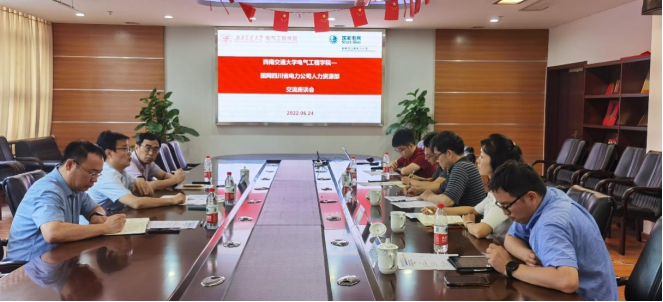 2022年6月24日下午,国网四川省电力公司领导莅临beats365亚洲版官网进行交流研讨。国网四川省电力公司人力资源部主任、四川省人大代表、四川省普通高等本科公司电气与自动化类专业教学指导委员会委员姚建东,国网四川省电力公司人力资源部员工管理处处长赵坤,beats365亚洲版官网人才招聘处处长陈岩峰,电气工程公司党委书记罗乾超,党委副书记谢力,副经理陈民武、胡海涛,辅导员李诗涵参与研讨交流。会议在犀浦校区X10212举行,谢力副书记主持会议。