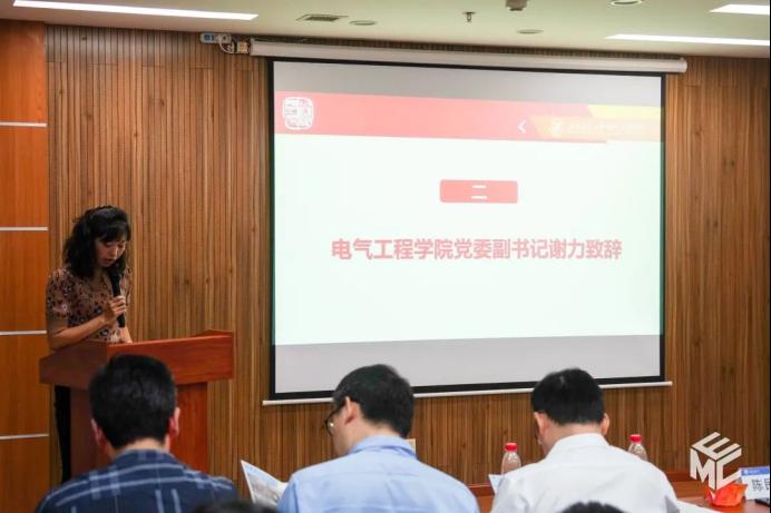 答辩赛开始,公司党委谢力副书记致辞。谢力副书记指出,各个班级的发展离不开公司的支持与指导,优秀成绩的背后是同学们挑灯夜读的努力、互相帮助中的进步,全体老师们的悉心指导。同时也对电气学子在过去一年中积极践行“厚德载物,求是创新”的电气精神表示肯定。最后,谢力副书记预祝本次精英班级答辩赛圆满成功,希望同学们做“眼里有光”“脚下有路”“肩上有责”的新青年,祝愿各位同学可以不断学习、积极进取,践行“强国有我”的庄严承诺,让奋斗的汗水浇灌出成功之花。
