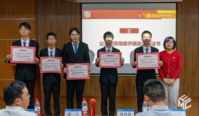 在交流环节结束后,主持人宣布了本次答辩赛的获奖名单。陈民武副经理、谢力副书记、赵舵老师、黄德青老师、张异老师为获奖班级颁发荣誉证书和奖杯。