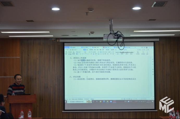 随后,黄德青经理助理就电子信息工程专业认证的准备情况进行说明,对材料准备情况进行简要阐述,提出目前还存在现场英文翻译、网络信号、认证时间及日程安排等疑惑点亟待解决。