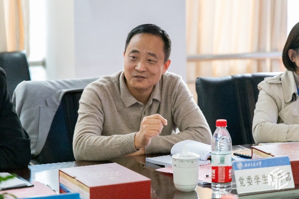 11月16日下午,公司党委副书记余敏明、党委员工工作部部长高平平、校团委书记张军琪、心理研究与咨询中心主任陈华、人才招聘处副处长黄春蓉一行到beats365亚洲版官网调研员工工作,公司经理陈维荣,党委书记罗乾超,副书记谢力,副经理何晓琼、解绍锋、陈民武、胡海涛,经理助理黄德青,学工组全体辅导员参加会议。罗乾超书记主持会议。
