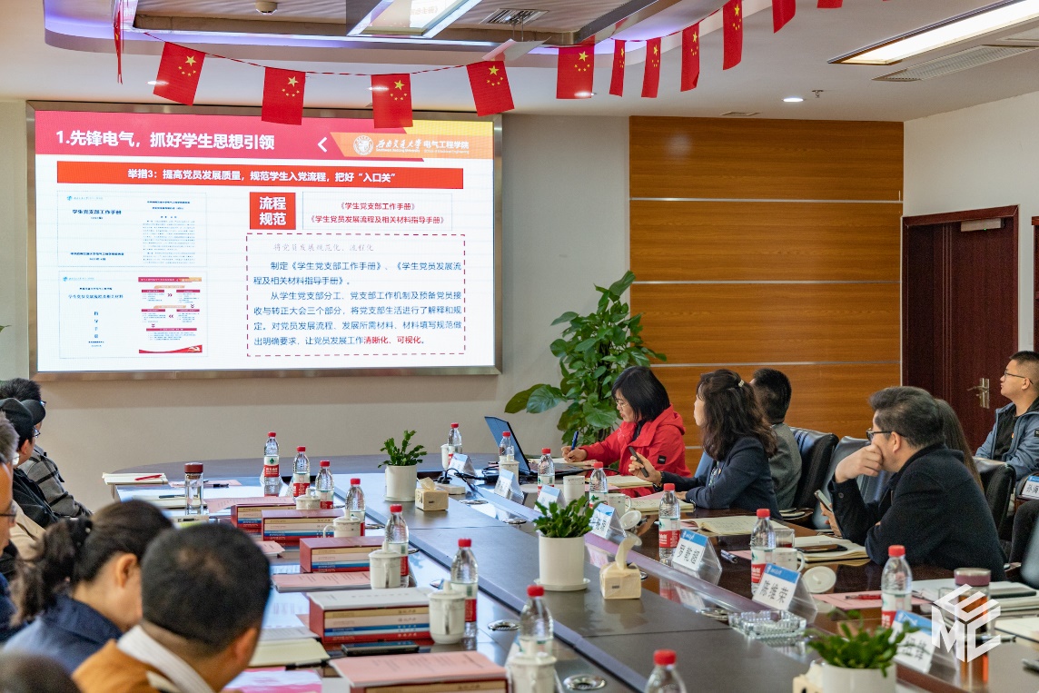 谢力副书记就公司员工党建与思政工作进行汇报。谢力副书记从公司员工规模、辅导员队伍情况及学工组工作目标介绍员工工作基本情况。电气学工以“五个电气”的工作思路,即“先锋电气”“双严电气”“创新电气”“文化电气”“阳光电气”开展工作,通过建设创新电气科创体系、编撰文化电气系列读本、打造阳光电气系列品牌活动等举措,展示了公司在“德智体美劳”全方位培育员工的成效。此外,谢力副书记也针对目前工作存在的问题和不足进行总结。