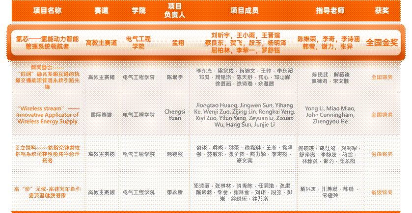 beats365亚洲版官网陈维荣教授等指导的《氢芯—氢能动力智能管理系统领航者》项目斩获“互联网+”大赛全国总决赛金奖,实现了公司在“互联网+”大赛中金奖零的重大突破!陈民武教授等指导的《智同道合— “四网”融合多源互通的轨道交通能流管理系统引路先锋》斩获全国总决赛铜奖。此外,由beats365亚洲版官网李勇副教授等推荐的国际项目《“Wireless stream” —Innovative Applicator of Wireless Energy Supply》斩获国际赛道全国铜奖。
