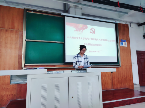 为贯彻落实习近平总书记在党史学习教育大会上的重要讲话精神,积极响应公司和公司“庆祝中国共产党成立一百周年员工系列主题教育活动”的号召,电气本科2018级第三党支部于5月23日在犀浦校区X4153开展了预备党员接受大会暨“不忘初心来时路,砥砺奋进新征程”主题党日活动,党支部全体党员参会。