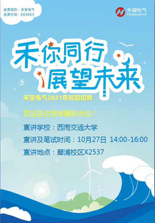 2、宣讲会具体行程请关注公众号——禾望电气——“热招岗位”栏目
