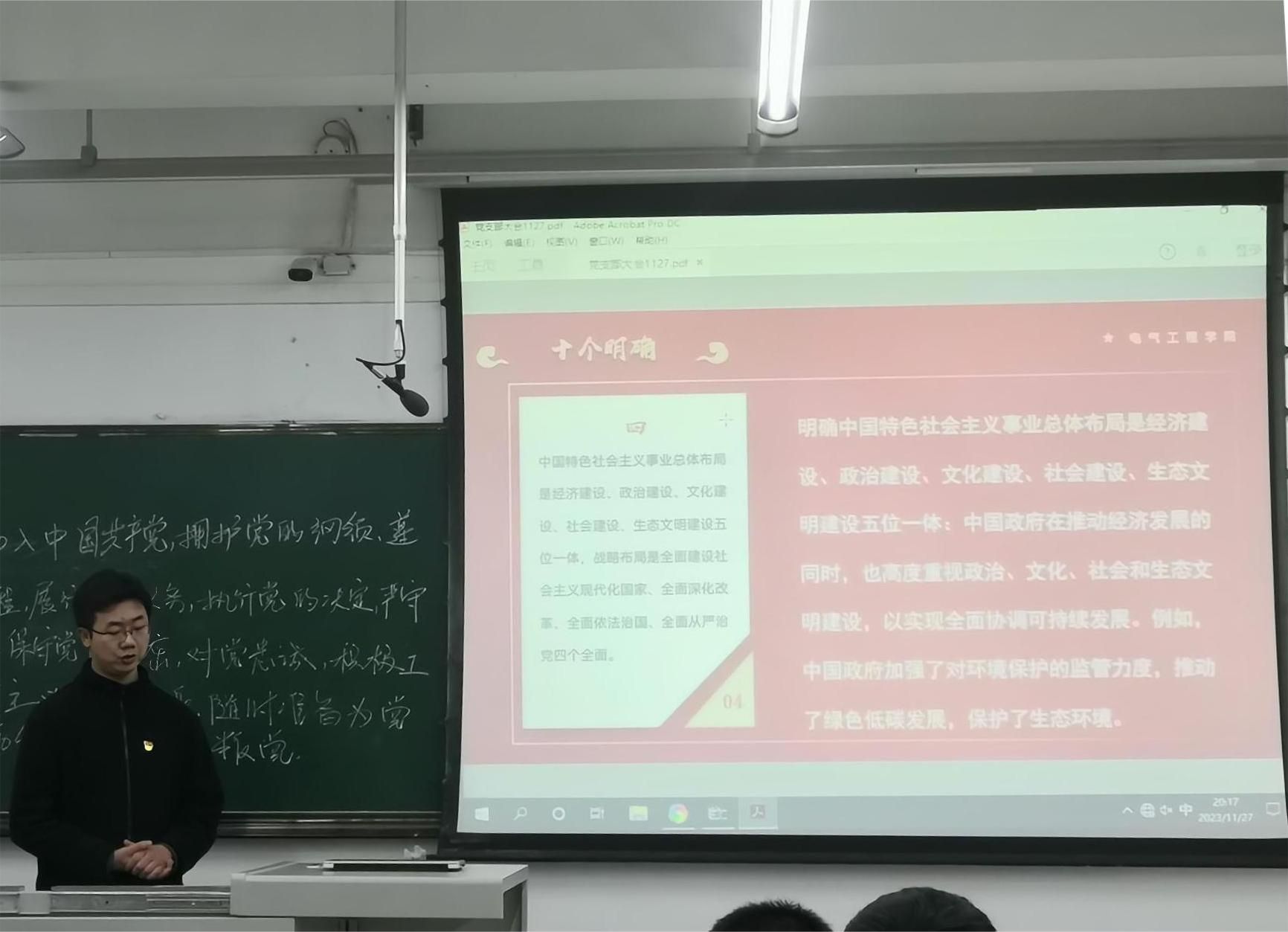 为深入学习宣传贯彻党的二十大精神,推动习近平新时代中国特色社会主义思想深入人心,更好发挥理论统一思想、凝心聚力的作用,把专业知识与支部建设工作相结合,做到理论联系实践,2023年10-11月,电气本科2020级第二党支部组织34党员同志开展了“青春心向党,筑梦新征程”主题党日活动。