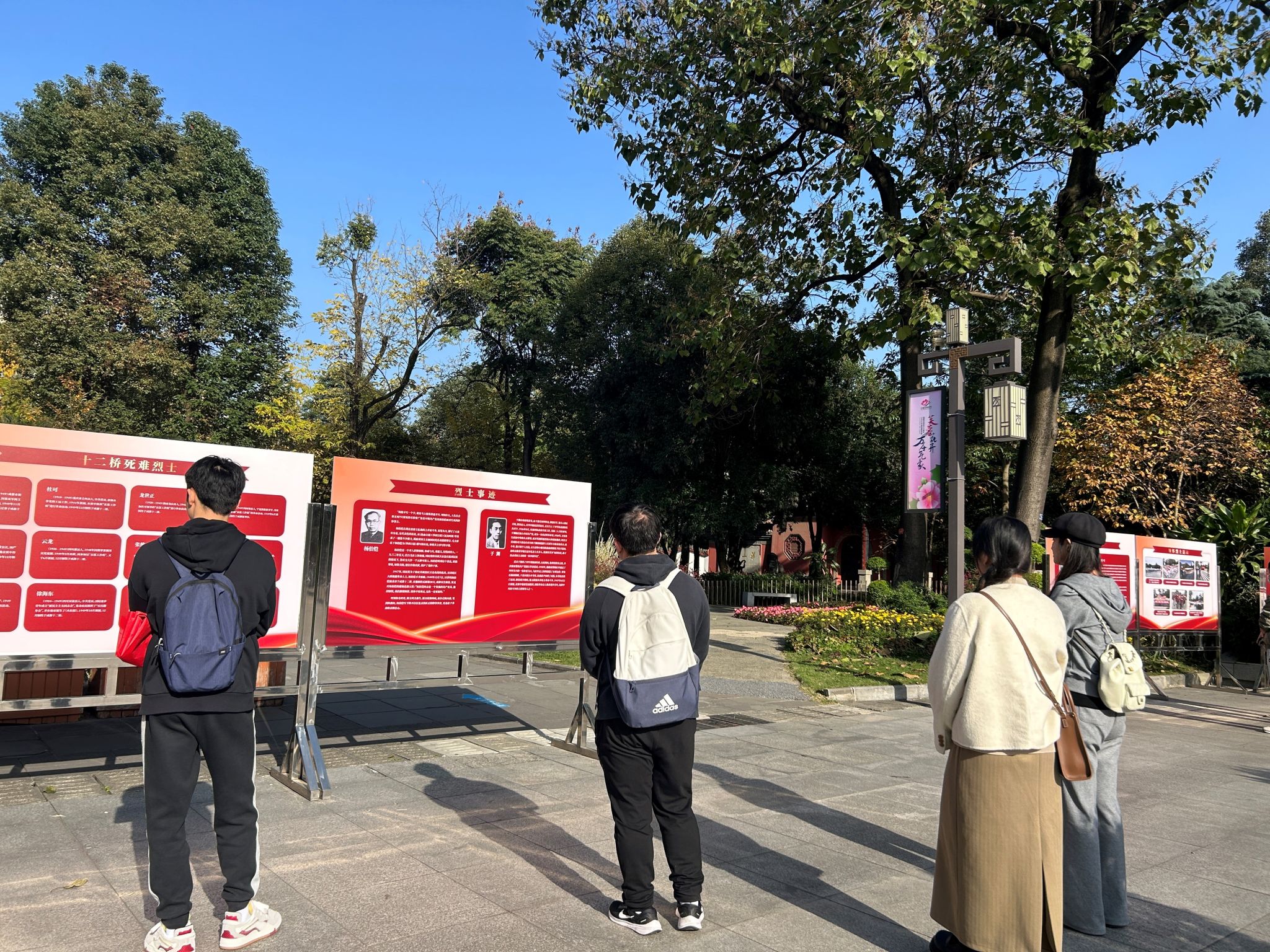 在成都市文化公园,在烈士墓前,大家仿佛再见那场成都黎明时刻的悲壮史诗——震惊全国的十二桥惨案,大家无不被烈士们大义凛然,慷慨赴死的英勇气概所折服。支部成员们通过展板了解杨伯恺、于渊、王干青、毛英才等36位烈士的英勇事迹,大家深切感受到了革命岁月中的艰难困苦和英勇奋斗。