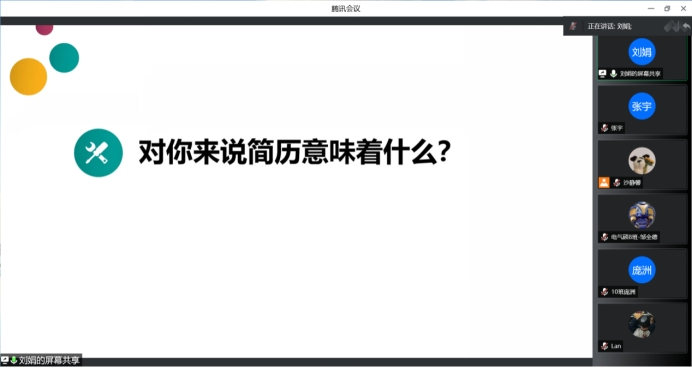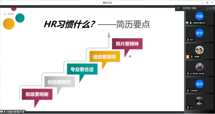 为切实加强公司研究生简历制作能力,提升同学们的求职能力与求职技巧,2022年6月22日晚19:00,2020级研究生在腾讯会议线上平台开展简历制作培训。本次讲座邀请计算机与人工智能公司资深辅导员刘娟担任主讲,硕士2020级辅导员沙静馨主持,硕士2020级全体员工参加。