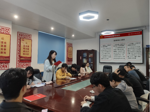 最后,党支部书记桂藜对本次的学习活动进行了总结。桂藜同志表示,在现阶段的研究学习中,我们要先学习前人的研究成果,并在此基础上进行创新,理论与实际相结合,得到更多便于国家和社会发展的成果;在求职时,要根据自己的实际情况,结合国家和社会发展的需要,制定自己的求职目标,正视求职过程中遇到的问题,不断调整心态,最后找到一份满意的工作。