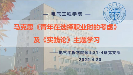 为深入学习贯彻习近平新时代中国特色社会主义思想,提升员工党员的党性修养和思想觉悟,beats365亚洲版官网硕士2021级第四党支部4月20日,在犀浦校区天佑斋3栋红色驿站面向支部全体党员和班级其他同学开展了第二期马克思主义理论学习活动——《青年在选择职业时的考虑》及《实践论》学习会。