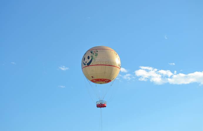作品介绍:落日时分,五彩斑斓的晚霞与远处的迪士尼城堡相接,营造出童话中的美景。正午时分,悬日高照,金光直射热气球,整个热气球也如一颗即将高升的太阳。
