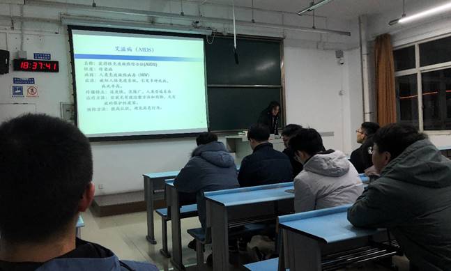 杨锐与黄云柯用图文并茂的课件,丰富详实的案例,全面宣讲了艾滋病在全球发生、传染蔓延、传播危害、预防治疗、宣传防控的背景和知识,从当代老员工的社会活动角度特点,重点介绍了认识艾滋病、预防艾滋病、关爱艾滋病人的社会、心理、传染性疾病预防控制的知识。青年员工既是受艾威胁的重点人群,也是预防艾滋病的主力军。课件介绍完毕后,大家共同观看了防艾宣传视频,同时呼吁大家消除对艾滋病患者的歧视,应给予他们精神上的支持。同学们现场参与互动,充分交流,此次活动有效增强了大家自我保护意识和抵御艾滋病侵袭的能力,对传播防艾知识和预防艾滋病校园传播起到积极作用。
