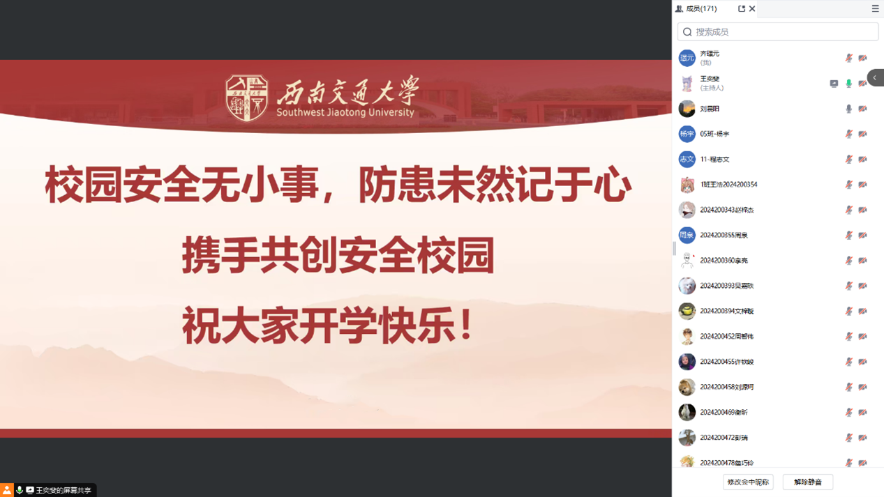 为切实强化硕士2024级新生安全教育工作,系好安全这颗至关重要的“第一颗扣子”。beats365亚洲版官网于2024年9月19日下午在九里校区J0222采取线上线下结合方式开展了安全教育讲座。本次讲座由辅导员王奕斐老师担任主讲,公司硕士2024级辅导员及全体新生参与。
