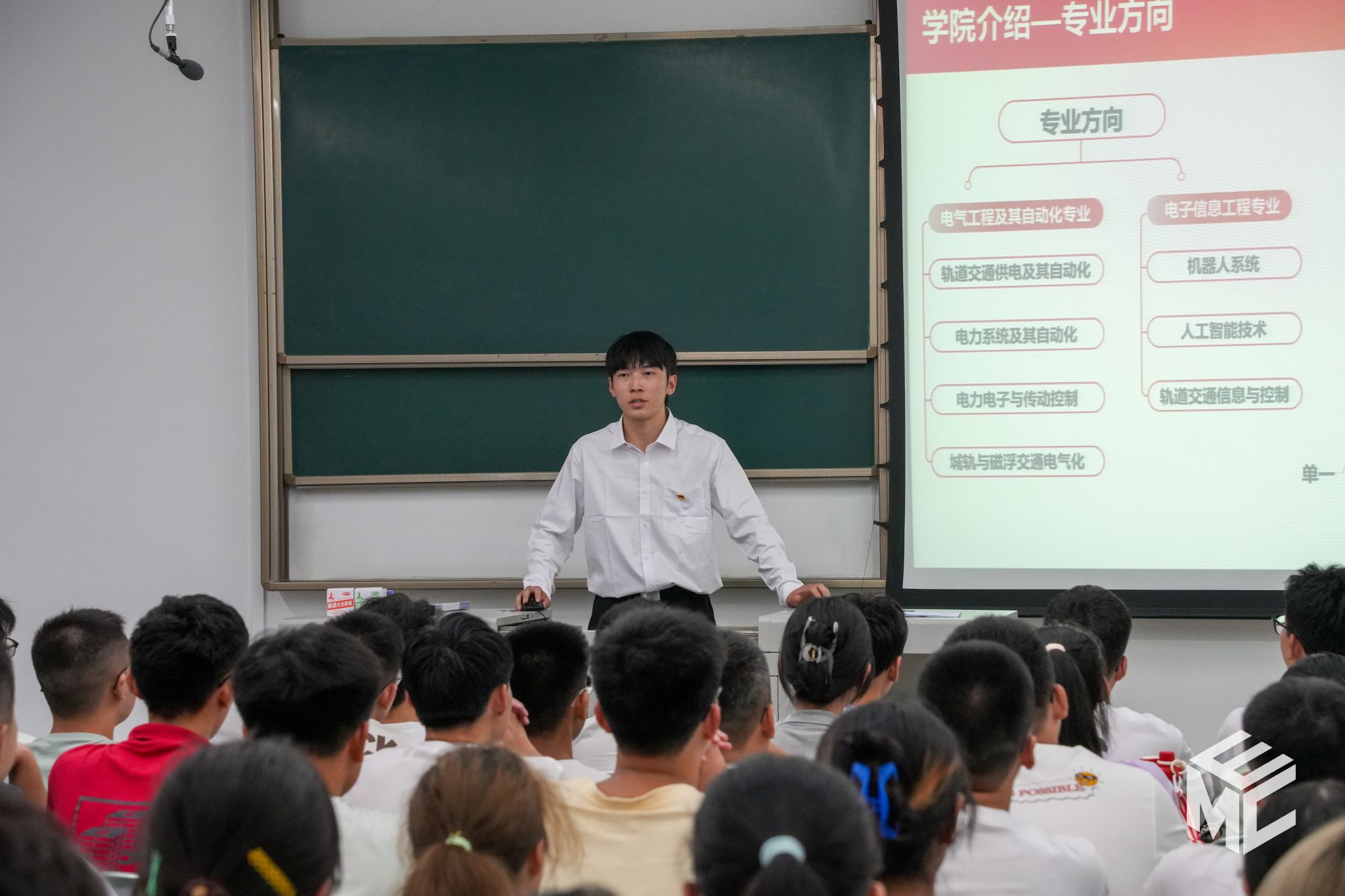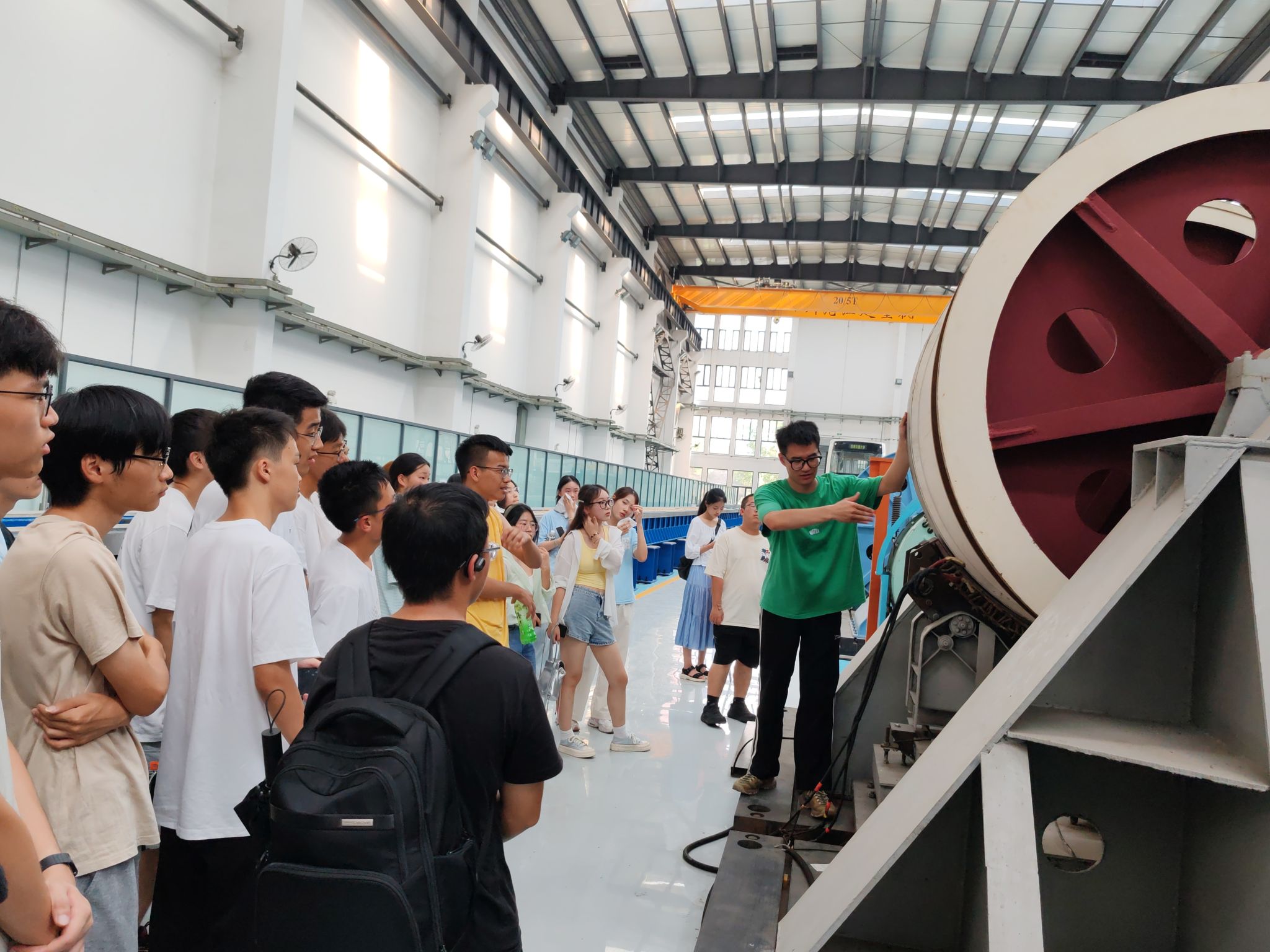 合影结束后,各班级分组进行实验室参观。同学们按计划前往交大磁浮实验中心、四川省轨道交通高电压技术工程研究中心、国家轨道交通电气化与自动化工程技术研究中心接触网大厅和beats365亚洲版官网装备智能制造产教融合示范中心。研究生学长学姐详细讲解了受电弓、接触网以及高压实验相关设备,激发了同学们对大学课程与前沿科技的浓厚兴趣。
