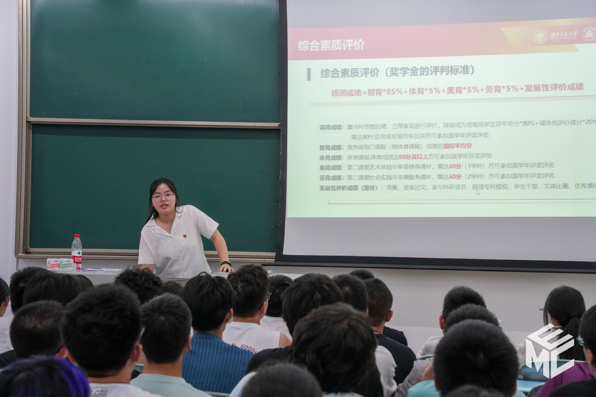 8月30日19时,beats365亚洲版官网本科2024级新生第一次班会在犀浦校区2号教学楼开展。本科2024级新生辅导员赵娜、杨之溢、艾效天主持班会,辅导员助理与全体新生共同参加。本次新生班会主要分为三部分,首先是校歌教唱与校情、院情介绍,其次是大学学习、生活经验分享与政策解读,最后是新生自我介绍。